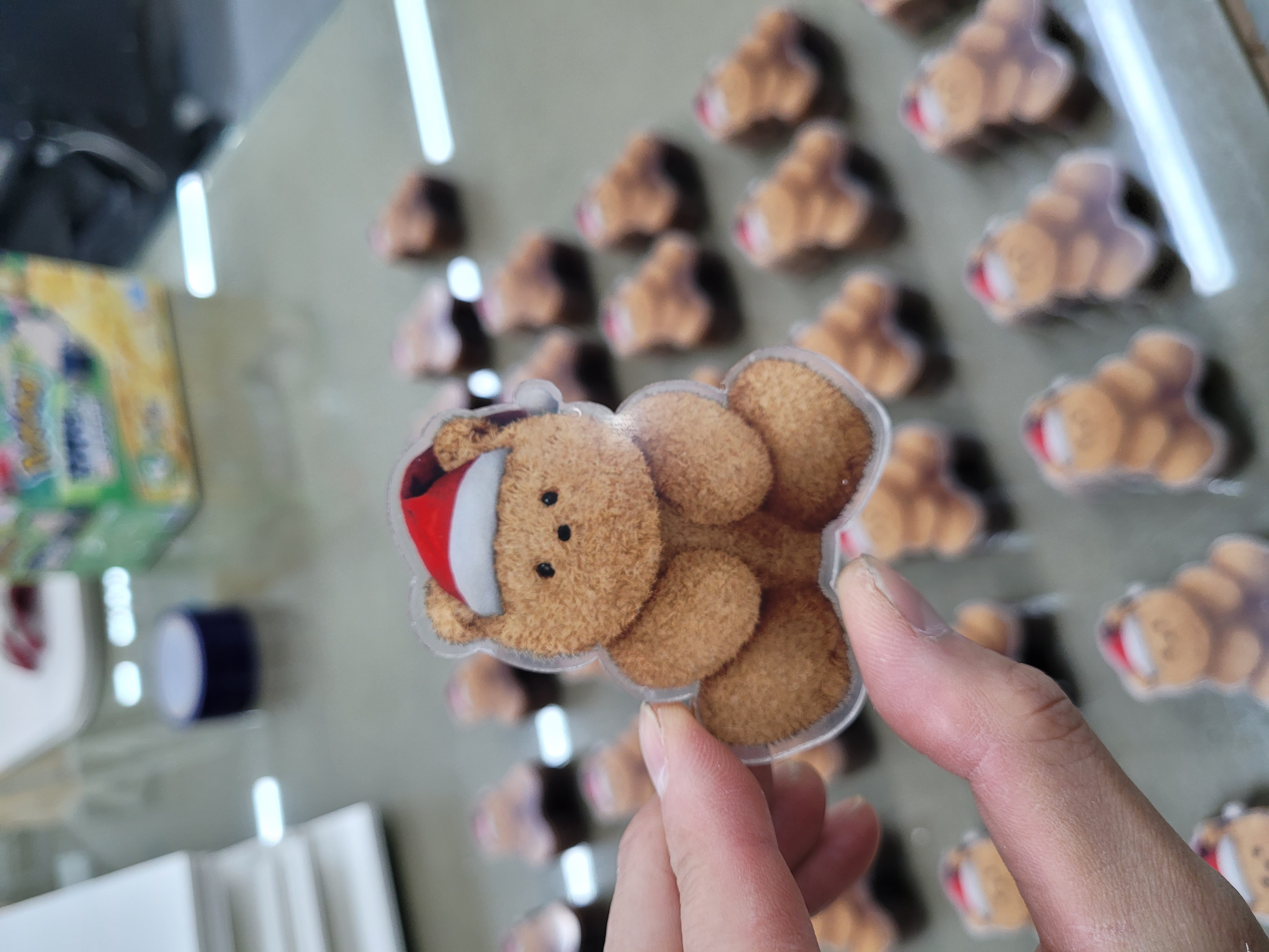 투명, 홀로그램, 글리터 등 다양한 소재의 아크릴 키링을 제작합니다. 빛의 각도에 따라 다르게 반짝이는 신비로운 매력의 키링으로 시선을 사로잡으세요. 클리어 투명 아크릴의 맑은 느낌, 오로라 홀로그램의 몽환적인 빛깔, 글리터가 가득한 반짝임 등 취향에 맞는 다양한 효과를 선택할 수 있습니다. 여러 색상의 컬러 아크릴, 형광 아크릴, 야광 아크릴, 미러 아크릴 등 특수 소재도 다양하게 보유하고 있어 개성 있는 키링을 만들 수 있습니다. 같은 디자인도 소재에 따라 전혀 다른 느낌이 되니, 다양한 버전으로 제작하여 컬렉션하는 재미를 누려보세요.